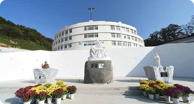 초기부터 돌아가시는 분들은 많았지만 묘지 마련을 못해 이곳저곳에 분산해 모시다가 1998년 음성군으로부터 음성군 통동리 산 56-25번지 등 임야 3만여 평에 법인 묘지인가를 받아 묘지를 조성하고 돌아가시는 분들을 매장으로 장사를 치렀다.