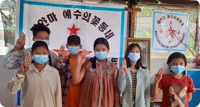 파견 당시에는 아웅산 수치 여사가 통치하던 시절이었지만 2021년 현재는 군부 쿠데타로 혼란 속에 있다. 온 나라가 국민들의 저항으로 피로 얼룩지고 있으며 꽃동네 수녀들은 현지 교회와 국민과 함께 군부가 물러가고 미얀마에 평화가 찾아오기를 간절히 기도하며 살고 있다.