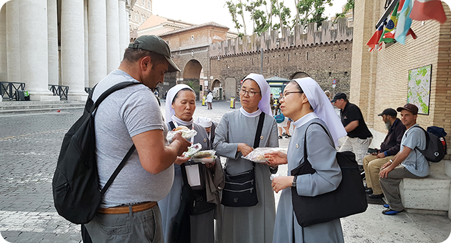 꽃동네 수도회는 2003년 로마 꽃동네 설립을 위한 기금마련 및 현지 실태조사를 진행하였고 로마교구청에 분원설치를 신청하였으며 곧 인가를 받았다. 2015년에는 교황청 내 노숙인 샤워장 운영을 통해 봉사하고 있으며 가난한 집시들을 위한 무료 급식을 하고 있다.