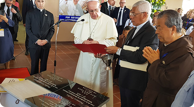 2019년 파나마 세계청년대회 마지막날 에이즈 시설을 방문한 교황님께 꽃동네가 준비중인 파나마, 아르헨티나, 파라과이, 자메이카의 사랑의집 머릿돌을 강복받았다.