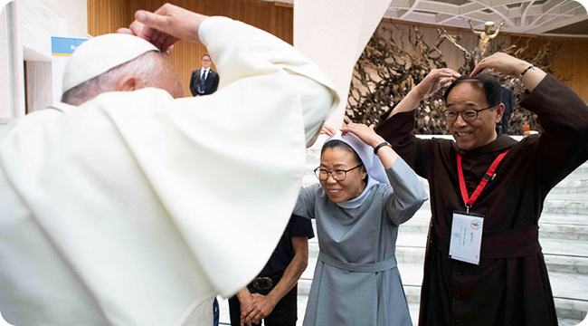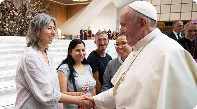새로운 세계성령쇄신단체인 <카리스>의 탄생을 기념하여 바티칸에서 열린 성령지도자대회 때 참석하신 교황님께서 꽃동네 수도자들과 그들이 돌보는 바티칸의 노숙인들을 만나주셨다.